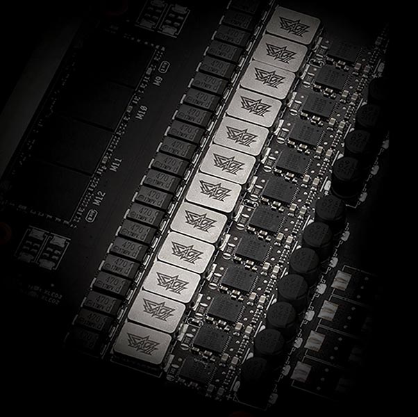 TUF Gaming cards leverage our tried-and-true Axial-tech fan design, with three fans working in tandem to satisfy the thermal demands of NVIDIA’s new high-octane design. The fan rotors spin on dual ball fan bearings to ensure consistent performance and increased longevity compared to sleeve bearings and other bearing types.