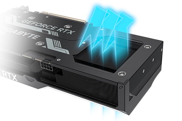 The metal back plate not only provides an aesthetical shape, but also enhances the structure of the graphics card to provide complete protection.