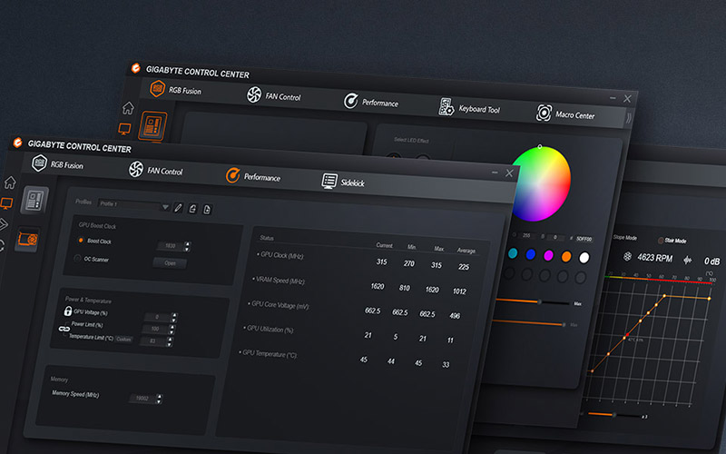 GIGABYTE CONTROL CENTER (GCC) is a unified software for all GIGABYTE supported products. It provides an intuitive interface that allows users to adjust clock speed, voltage, fan mode and power target in real-time.