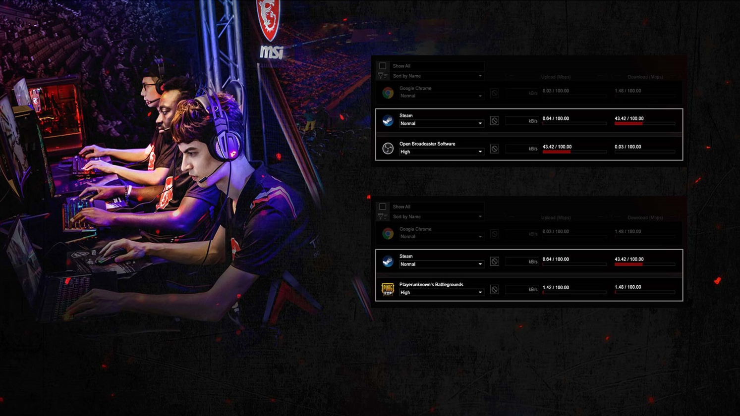 MSI GAMING LAN Manager automatically classifies and prioritizes latency-sensitive applications, giving you great low latency online gaming experiences.