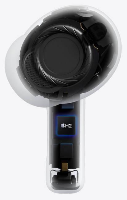 Powered by the Apple-designed H2 chip, AirPods Pro 3 feature a completely redesigned acoustic architecture that brings breathtaking, all-around-you audio to everything you listen to - from your pump-up playlist to your weekly FaceTime call with family.