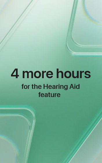 Hearing Aid users now get 67 percent more battery life in Transparency on a single charge. That’s a total of up to 10 hours, making it easier than ever to use this breakthrough capability morning, noon, and night.