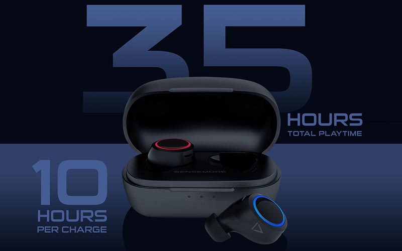 Power your day with Creative Sensemore Air. The earbuds offer up to 10 hours of playtime on a single charge along with 2.5 additional charges, totalling up to 35 hours1, when placed in a fully charged case.