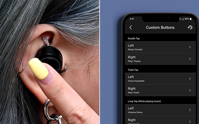 Take charge and personalize your Touch Controls the way you want them to function. The intuitive touch controls are meant to bring you comfort in familiarity and convenience, where you can manage your volume, music, and calls with just a few taps. Be it answering calls or skipping tracks, you can customize your Touch Control on the Creative app via the Custom Buttons module and tweak them as you wish.