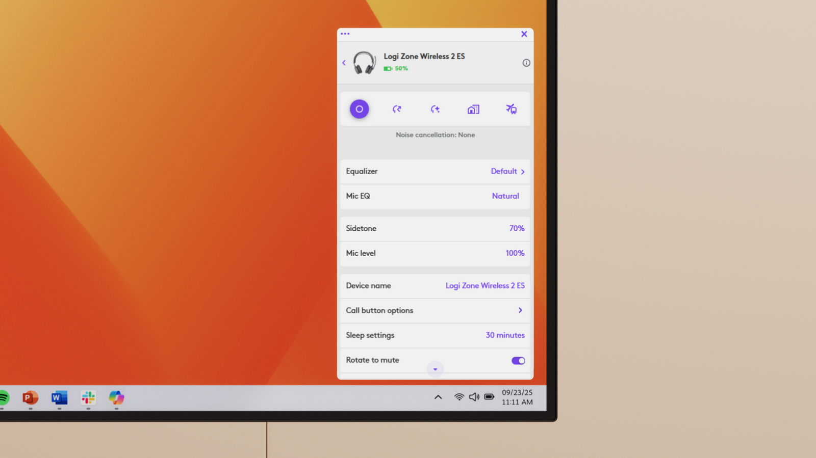 Note: Enable Adaptive ANC mode in Logi Tune. ANC modes are customizable on Logi Tune app.