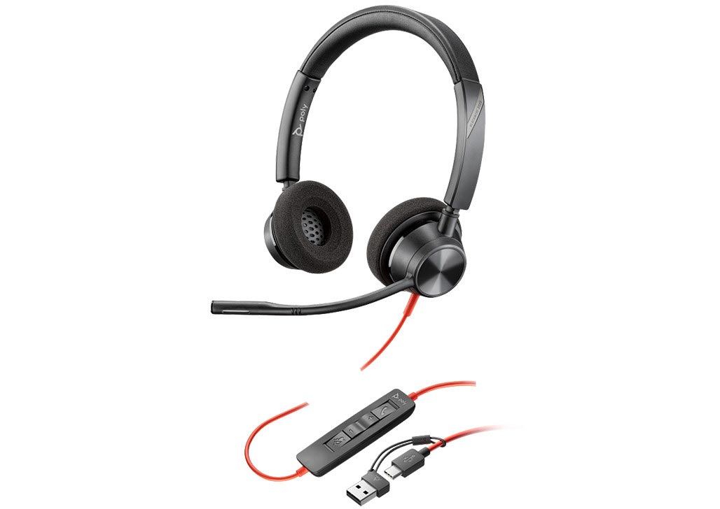 Στερεοφωνικά ακουστικά Poly Blackwire 3320 USB-C + Προσαρμογέας USB-C/A