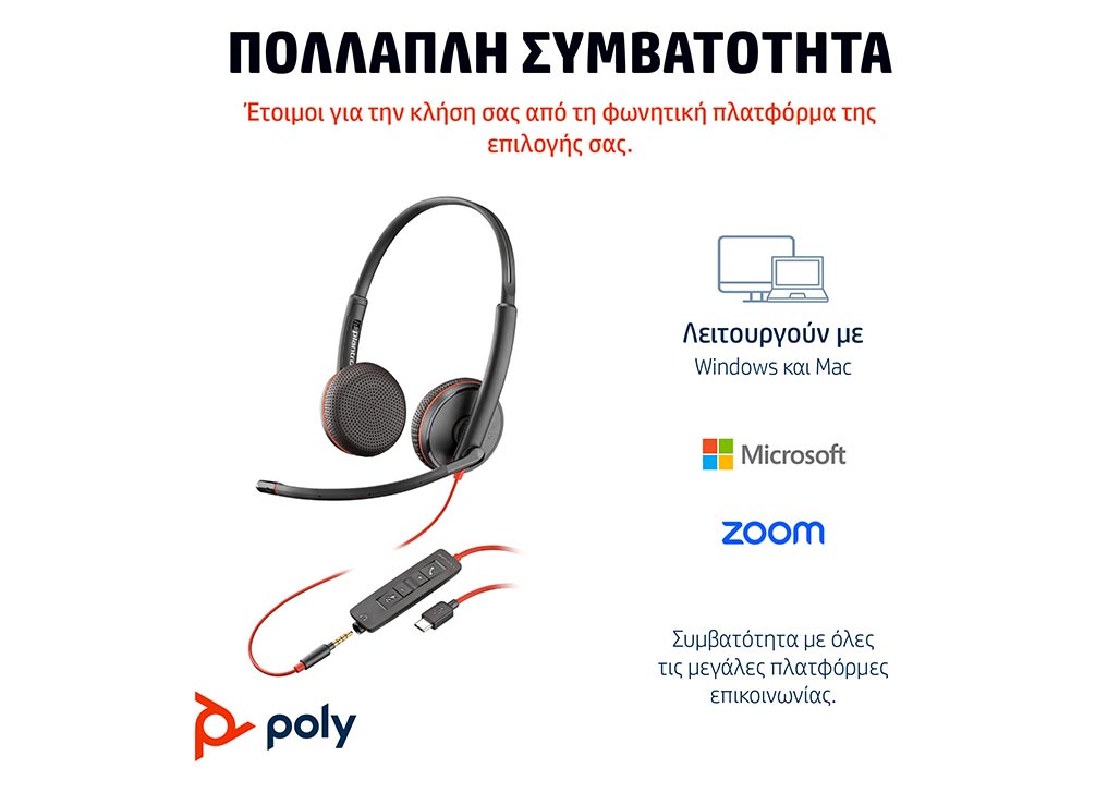 | Μοντέλο | Blackwire 3325 Wired USB-C Stereo Headset with 3.5mm plug + USB-C adapter |
