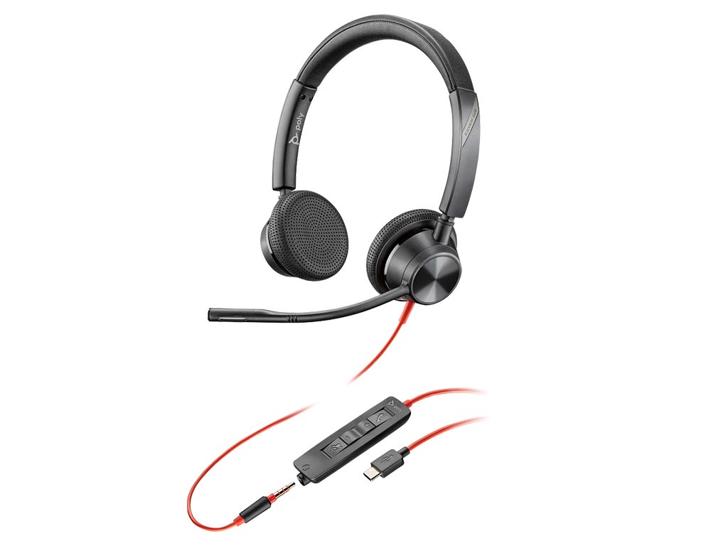 Poly Blackwire 3325 Wired USB-C Stereo Headset with 3.5mm plug + USB-C adapter