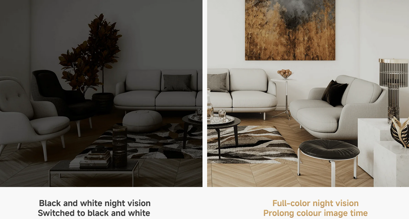 With the assistance of the built-in high-sensitivity image sensor, the camera can better adapt to low-light environments and retain colour images for a long period of time.