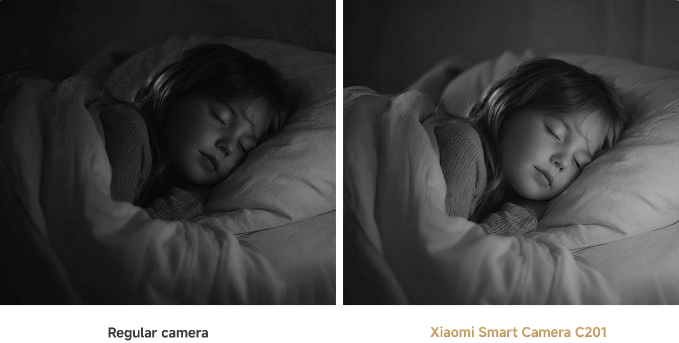 The camera has six built-in infrared illuminators and can capture clear images even on dark nights without producing red light or disturbing your family's sleep.