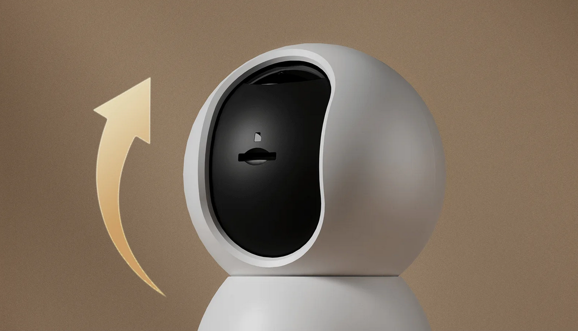 The camera supports physical privacy masking, allowing the lens to tuck upward into the camera body to physically block it, ensuring your security and peace of mind.
