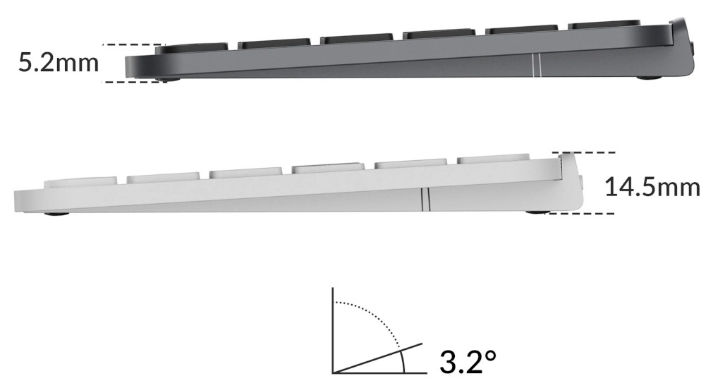 With a tilt angle of 3.2 degrees and an ultra-thin integrated body of 5.2mm thickness, it provides stability while typing, preventing wobbling and reducing fatigue even during long typing sessions.