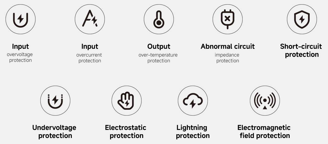 The casing is made from UL94-V0-rated flame-retardant and high-temperature-resistant material, combined with intelligent temperature control. Multiple safety protections to ensure comprehensive charging safety for dependable quality.