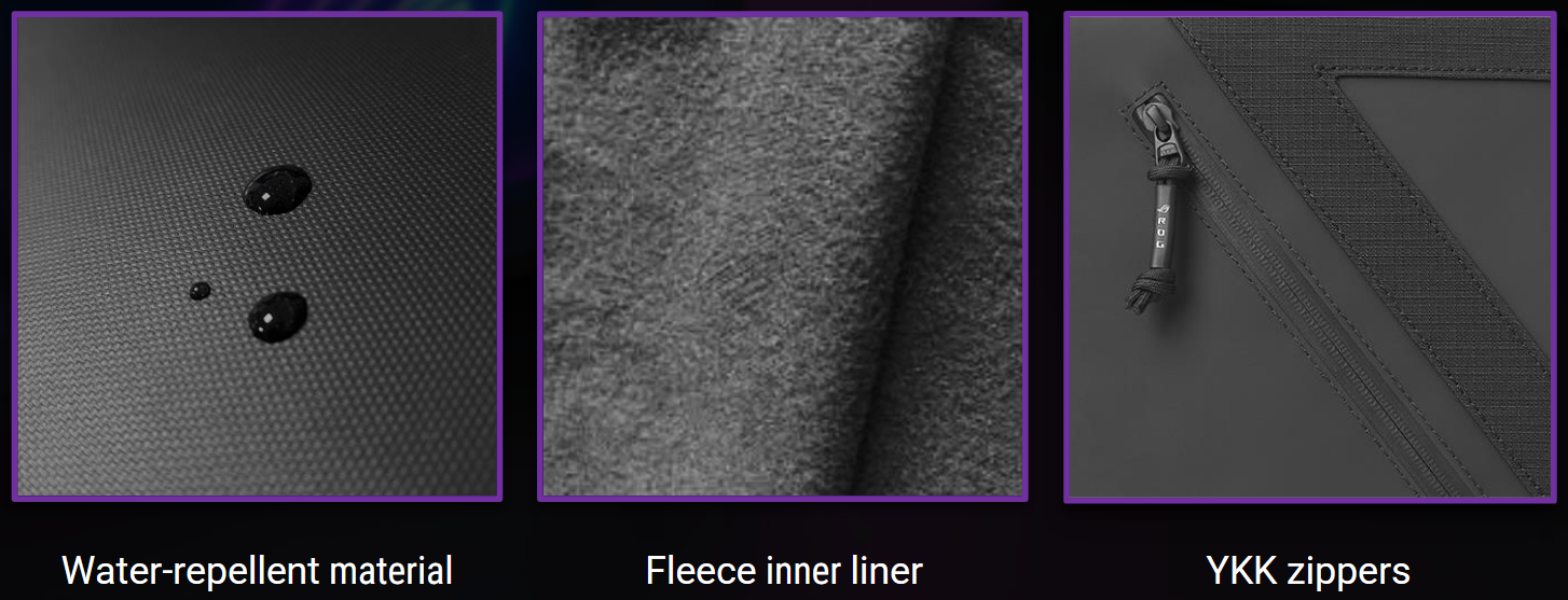 - The case features water-repellent coated PU material and ROG emblazoned YKK zippers to protect your gears.