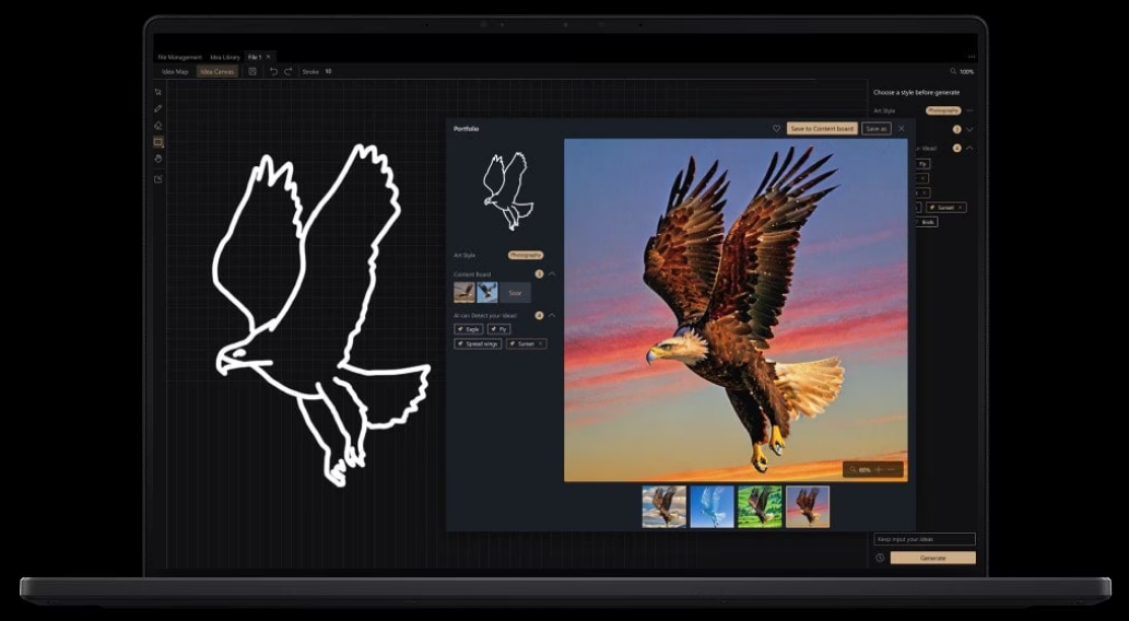 Transform your inspiration into imagery swiftly and conveniently using our simple and innovative interface, effortlessly fleshing out your sketches and ideas. Your creations are intelligently stored and managed at all times for easy access and organization.