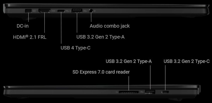 Comprehensive I/O ports allow seamless connectivity, for full productivity wherever you are. There’s one 40 Gbps USB 4 Type-C port for fast charging and external displays, alongside two USB 3.2 Gen 2 Type-A port, and the latest HDMI 2.1 FRL port, as well as an SD Express 7.0 card reader for quick transfers. Ultrafast WiFi 7 ensures seamless connectivity anywhere. For models equipped with GeForce RTX 5070 or 5060 GPUs, the system supports up to three external displays at 8K resolution with a 60 Hz refresh rate, or three displays at 4K resolution with a 120 Hz refresh rate. For models featuring an RTX 5070 Ti GPU or above, configurations of up to two external displays at 8K 60 Hz plus one at 8K 120 Hz, or two displays at 4K 240 Hz plus one at 4K 120 Hz, are supported.