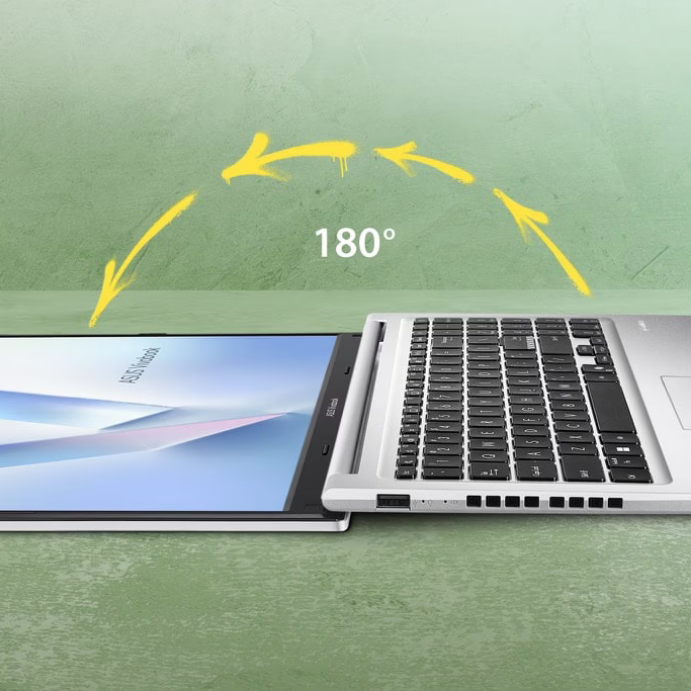 ASUS Vivobook 15 features a precision-engineered, lay-flat hinge that makes it easy to share content with others, or collaborate with a group of people around a table.