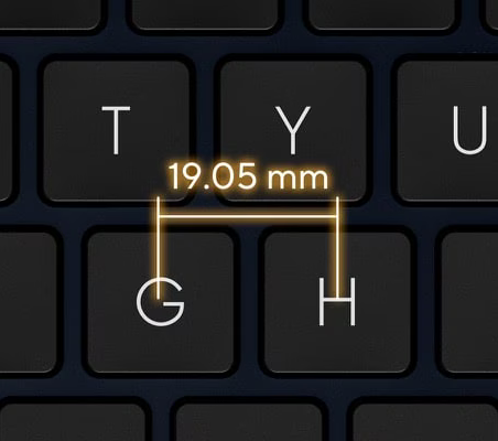 Larger key cap with 19.05 mm key pitch