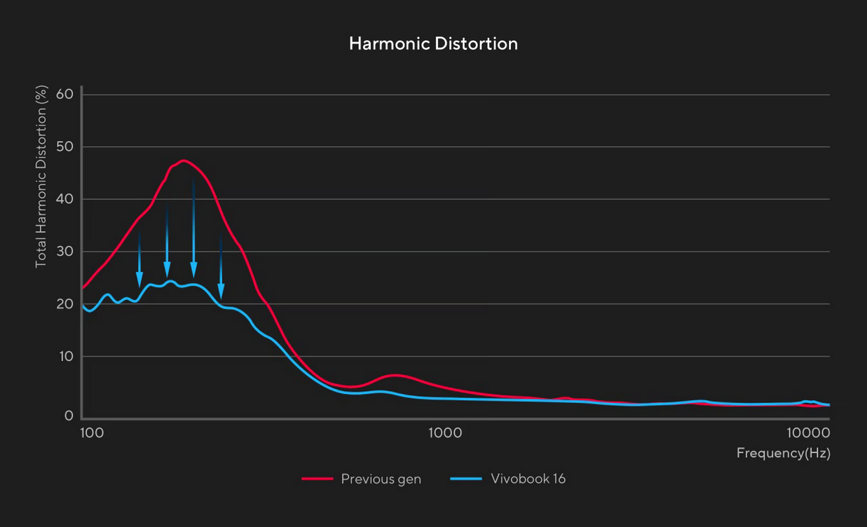 ASUS Vivobook 16 provides a clearer and better sound experience, especially at low frequency.