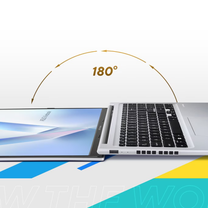 ASUS Vivobook 16 features a precision-engineered, lay-flat hinge that makes it easy to share content with others, or collaborate with a group of people around a table.