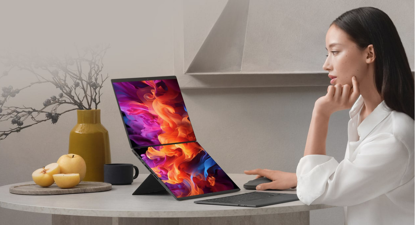 Το ASUS Zenbook DUO είναι τώρα 5% μικρότερο, αλλά διατηρεί το βάρος του στα 1.65 kg, διαθέτοντας ταχύτερο επεξεργαστή και βελτιωμένες λειτουργίες. Ένας επανασχεδιασμένος μεντεσές κρυψίματος φέρνει τις δύο οθόνες πιο κοντά για μια απρόσκοπτη, αδιάλειπτη εμπειρία προβολής οπουδήποτε, και τώρα τοποθετείται εντελώς επίπεδα για εύκολη κοινή χρήση.