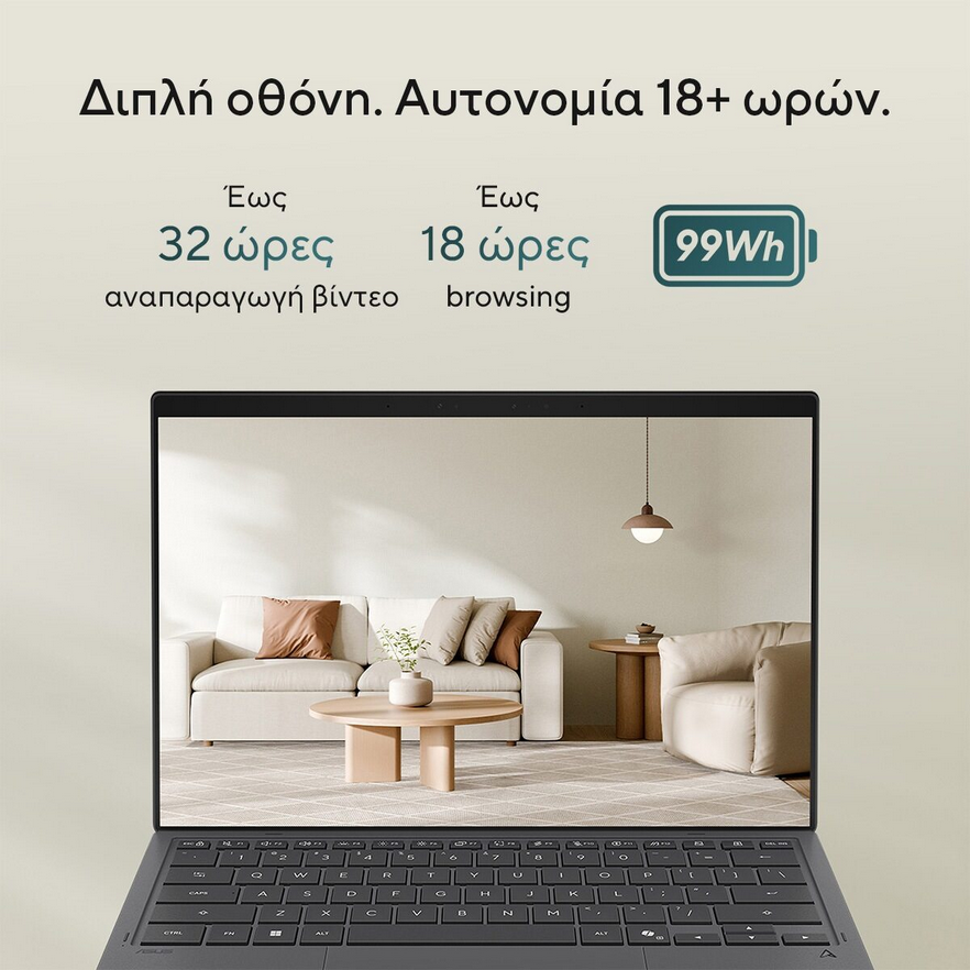 - Το πιο συμπαγές Zenbook DUO που έχει κατασκευαστεί ποτέ, με νέο σχεδιασμό κρυφού μεντεσέ και ευρεία προβολή σχεδόν 20”.