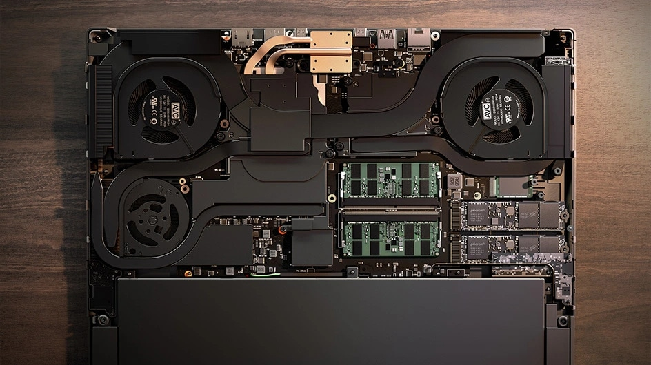 Massive heat pipes, triple falcon fan design, and gravity assist design pushes thermal performance beyond expectations.