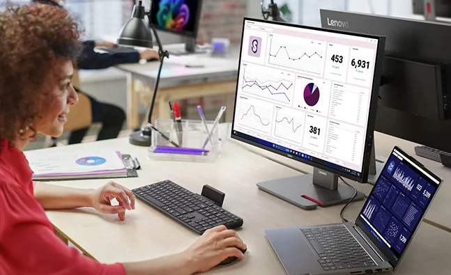 The ThinkBook 14 Gen 9 laptop offers device expandability with generous storage and memory options. A wide range of ports enables effortless file transfers, device charging, and lag-free screen sharing. Seamless connectivity combined with the option of a large battery keeps you unplugged and up and running, no matter where your job takes you.