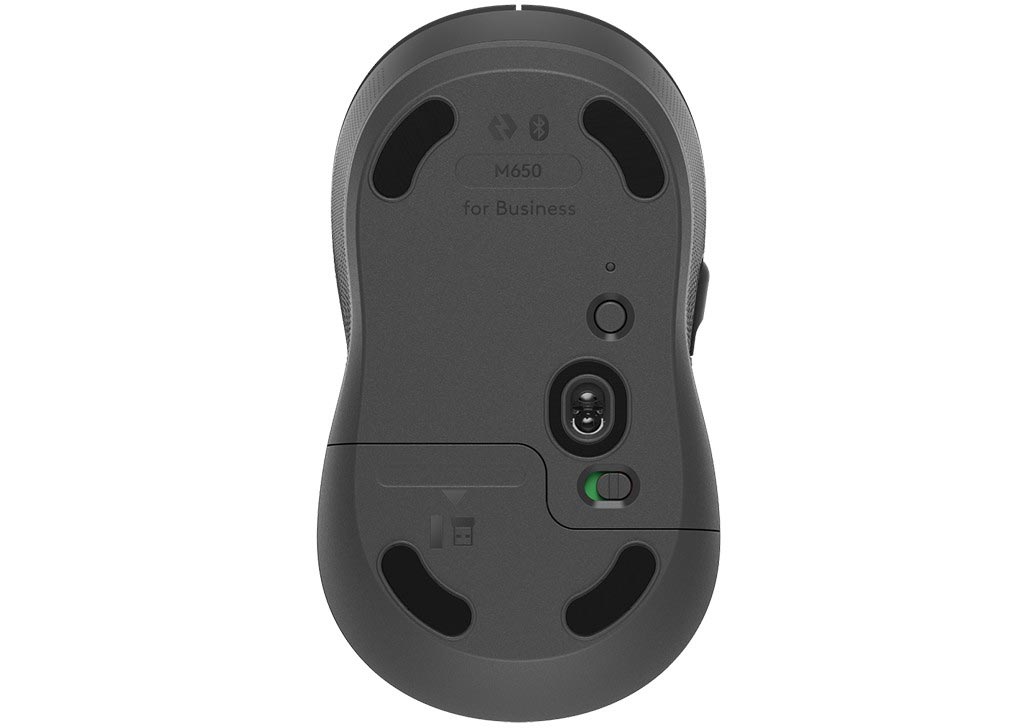 | Λοιπά στοιχεία | Mouse Dimensions (H x W x D): 108.2 x 61 x 38.8 mm Mouse Weight: ~ 101.4 g USB Receiver Dimensions (H x W x D): 18.7 x 14.4 x 6.1 mm USB Receiver Weight: ~ 1.7 g Scroll Wheel: Line by line precision and hyper-fast speed Battery: 1x AA battery (included) providing 24-months of operation Wireless operating distance: Up to 10 meters Customization app: Supported by Logi Options+ on Windows and macOS Logi Bolt USB Receiver Compatibility: USB-A Port: Windows 10/11 or later, macOS 10.10 or later, Linux, ChromeOS Bluetooth Low Energy Compatibility: Windows 10/11 or later, macOS 10.15 or later, Linux, ChromeOS, iPadOS 13.4 or later, Android 5.0 or later In the Box Signature M650 for Business mouse Logi Bolt USB receiver (USB Type A) 1x AA battery User documentation |