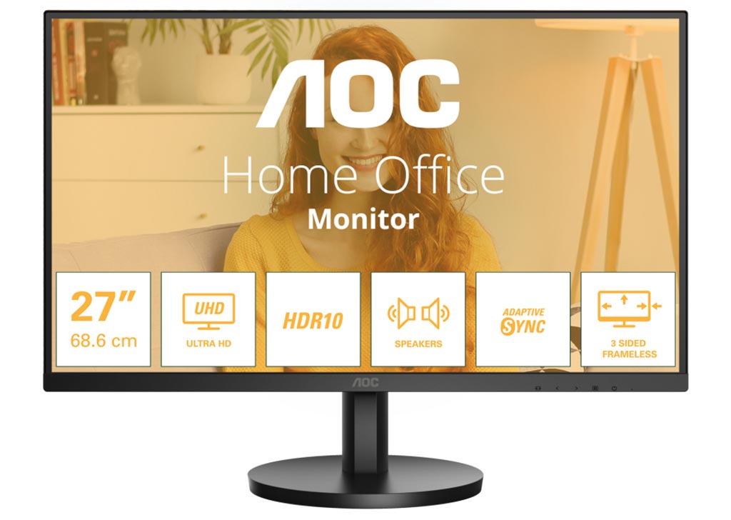 Boost your productivity to the fullest with the AOC U27B3A. This 27-inch UHD monitor boasts a smooth 60Hz refresh rate and a sleek three-sided frameless design, ensuring a comfortable viewing experience. Say goodbye to eye strain with its low blue light feature providing ample protection for your eyes. Plus, enjoy tear-free visuals thanks to Adaptive Sync technology, and feel yourself in stunningly clear graphics with HDR10 support. With the built-in 2-watt speaker you can have enhanced audio experience.
