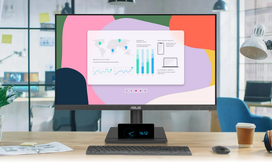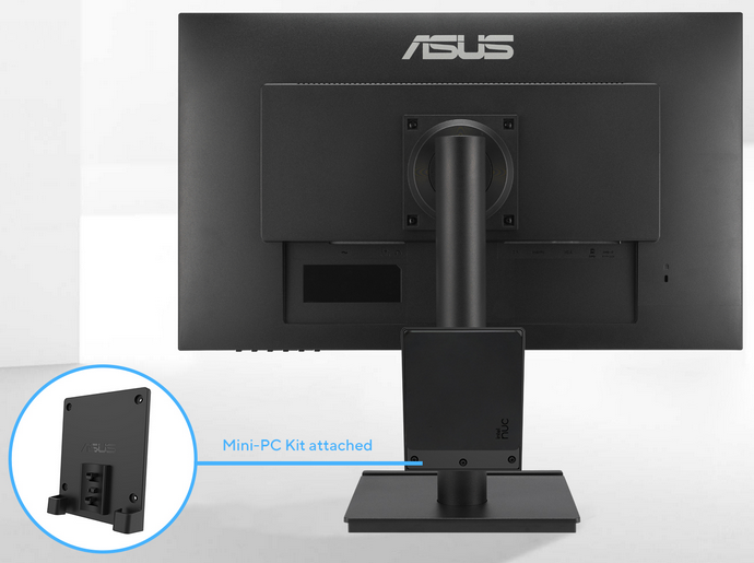 Selected ASUS monitors are compatible with ASUS-designed mini-PC kit (MKT03), it allows users to mount NUC / Mini-PCs on the rear of monitor stand, making the desktop clutter-free and space saving.