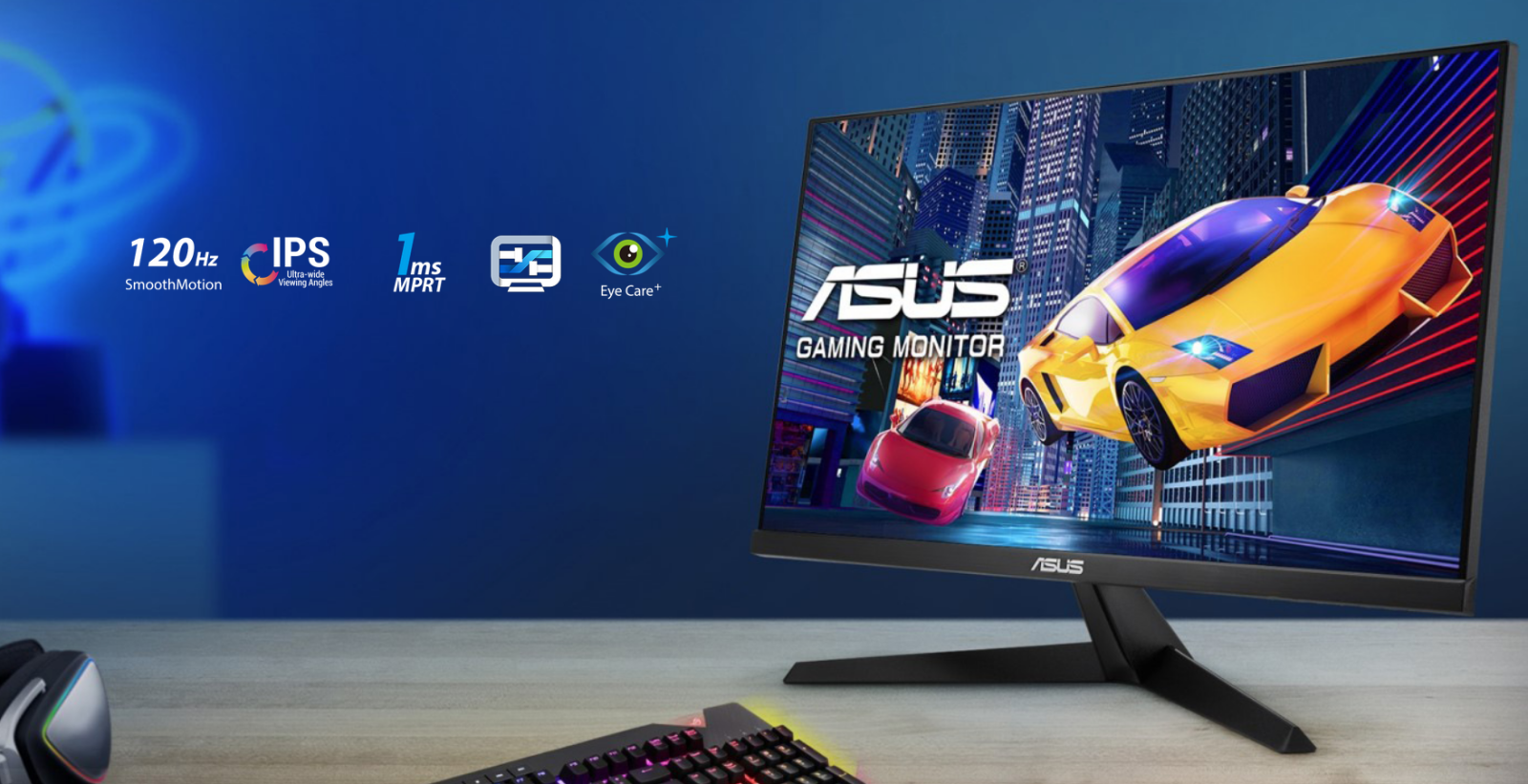 ASUS VY279HGR Eye Care Gaming monitor is designed with your health in mind. It features IPS FHD panel that delivers exceptional visuals. Ideal for eLearning, work or entertainment, the combination of a 120 Hz(OC) refresh rate and Adaptive Sync support ensures you’ll enjoy consistently smooth visuals with any content. It features ASUS Eye Care Plus technology to ensure everyday comfortable viewing.