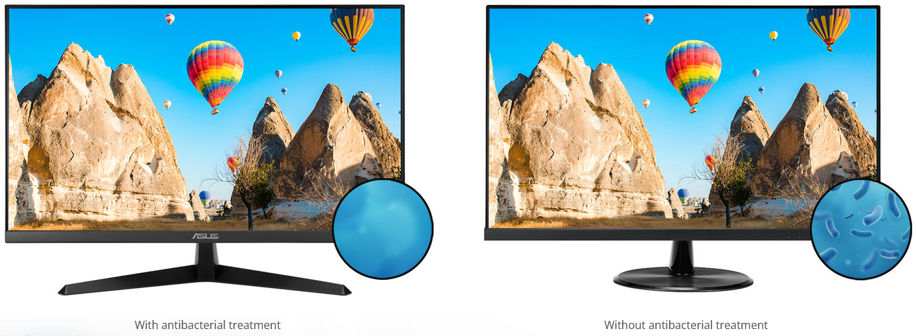 The bezels and hotkeys on VY279HGR feature an antibacterial ionic silver treatment. By preventing bacteria adhesion by up to 99.9%, it keeps key areas of the monitor clean and hygienic, potentially reducing the spread of harmful bacteria.