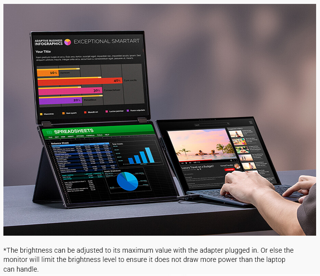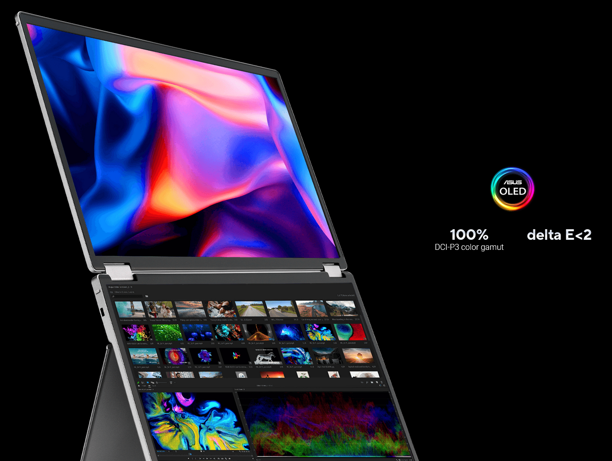 The OLED technology in ZenScreen Duo OLED MQ149CD offers premium visual experience with inky blacks and bright highlights. It also delivers extremely crisp and clear details, even in the darkest scenes.