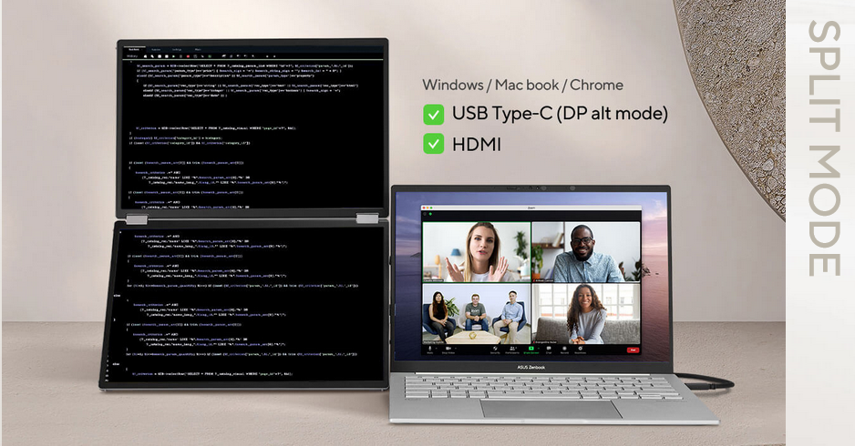 Split mode allows the MQ149CD to display content in a single, waterfall-like view. This is perfect for using as an extended monitor for your laptop while coding, reading long documents, or participating in online meetings.
