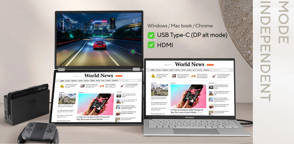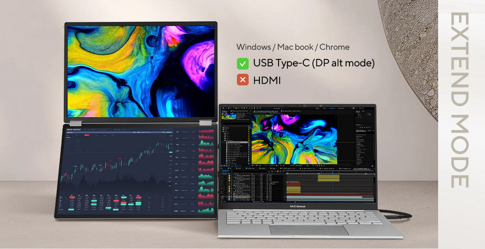 Extend mode is designed for multitasking on-the-go. It is ideal for working and checking on various windows and screens at once.