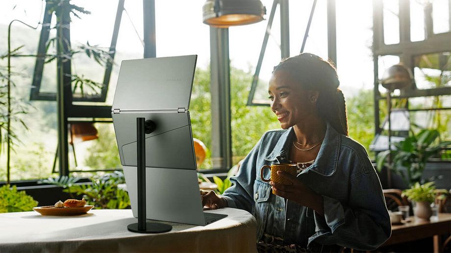 With ASUS DisplayWidget Center software it can automatically sense its orientation and switch the display between landscape and portrait modes while connected to your laptop.