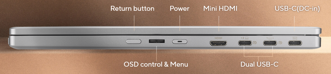 | Inputs | Mini HDMI x1 USB Type C x3 (2x DP Alt Mode + 1x DC IN, Power Only, Up to 20V@1.5A for power adapter) |