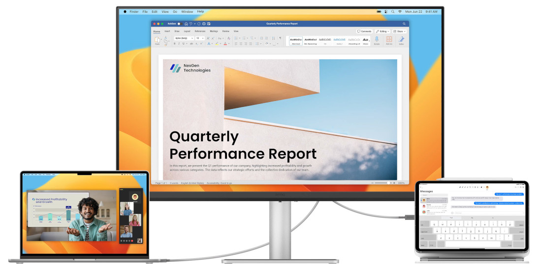 More than a stylish external monitor for your MacBook Pro and MacBook Air computer, it’s also a powerful hub for your desktop Apple ecosystem. The built-in 15W hub charges your iPad® and iPhone® devices while you work.