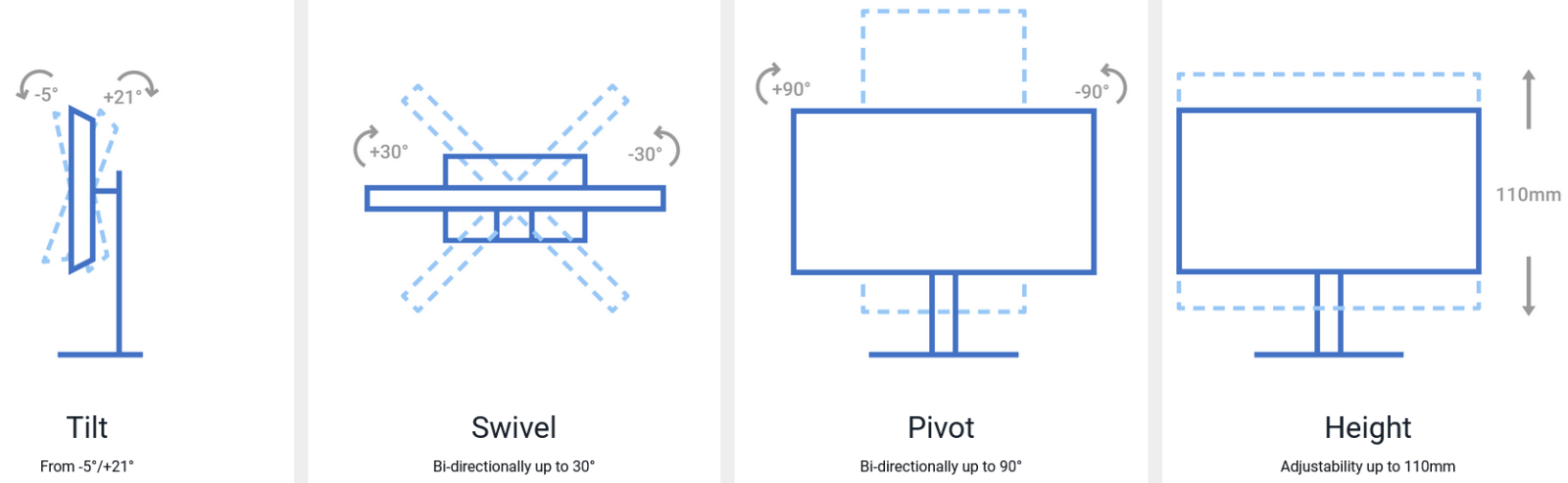 | Πρόσθετα Χαρακτηριστικά | USB Hub - 2x USB-C 3.2 Gen 1 (1x Upstream: Supports DP Alt v1.4, PD up to 65W + 1x Downstream: Supports PD up to 15W), 2x USB-A 3.2 Gen 1 Dowstream (1x Battery Charging v1.2) Speakers (3W x2) VESA (100 x 100 mm) AMD FreeSync Tilt (-5° ~ +21°) Swivel (+/- 30°) Pivot (+/- 90°) Height Adjustment (110mm) |