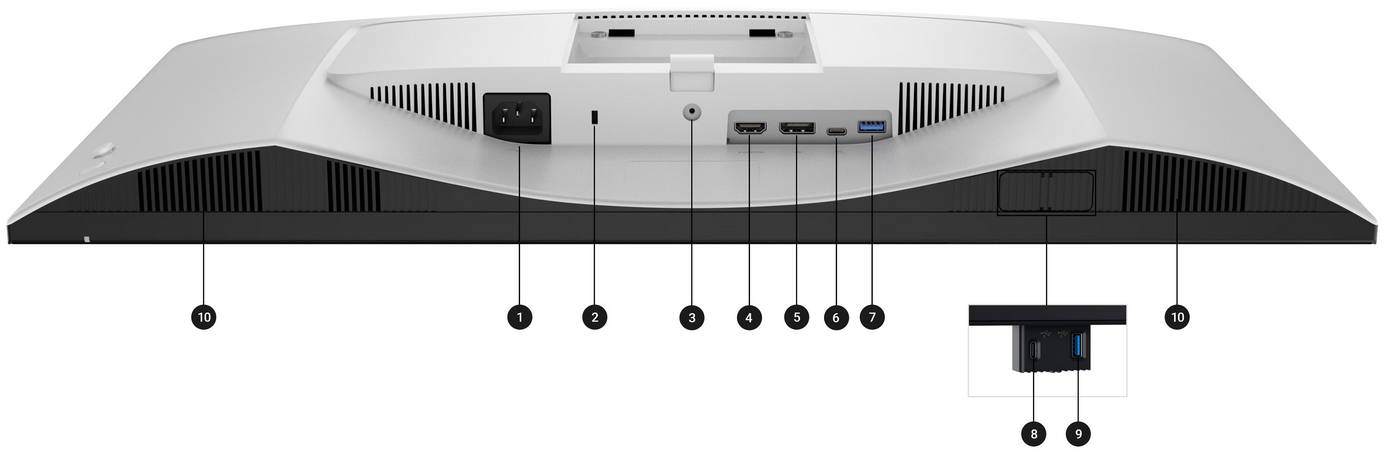 - 6) USB-C 5Gbps upstream port (DisplayPort 1.4 Alt. Mode, Power Delivery up to 65W)