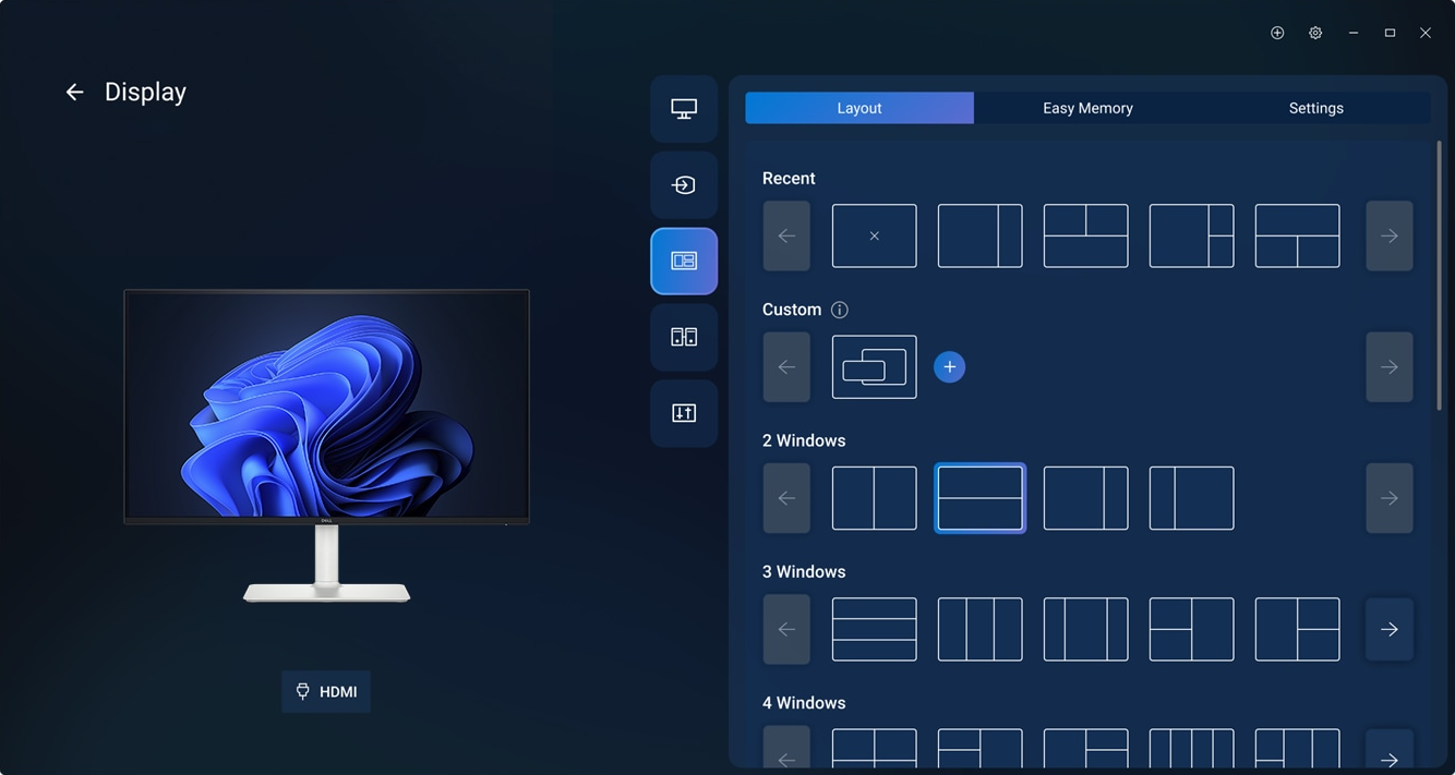 Easy Arrange tiles apps across screens with pre-set partitions and customises up to five windows, enhancing multitasking. Easy Arrange Memory saves and restores app profiles manually, on schedule, or at start-up.