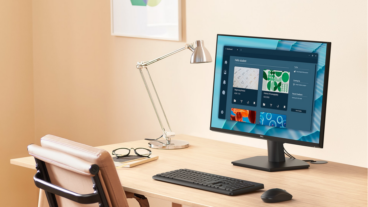 Keep your space neat with this small footprint monitor featuring a built-in power supply unit and cable holder.