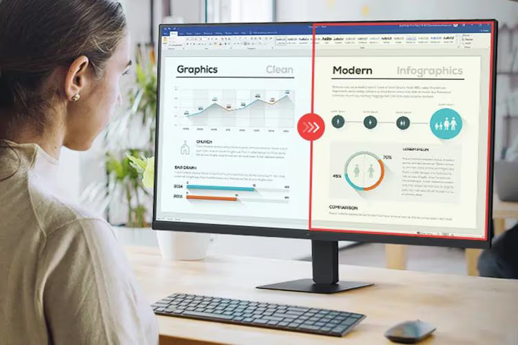 This LG monitor has a virtually borderless screen on three sides. The narrow-bezel design not only keeps your focused on the screen, but is made to look great on the desktop.
