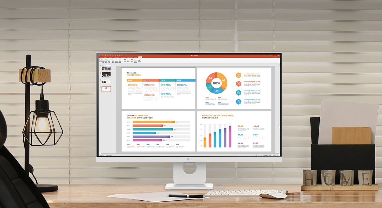 The 3-side borderless design of the slim white body, combined with the slim-flat stand, blends into your office or home, occupying minimal space. It allows an ideal viewing experience through convenient tilt adjustment.
