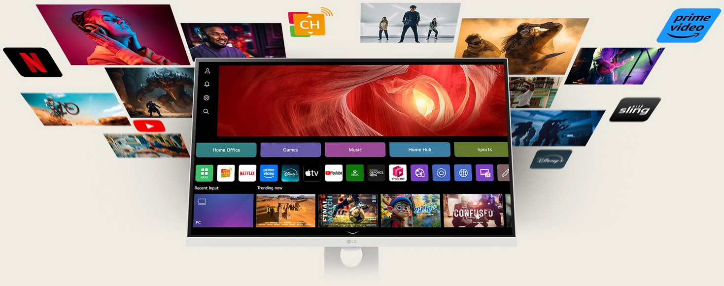 Adapt to any task or environment with numerous possibilities. Powered by webOS, you can manage home office tasks without a PC and enjoy a wealth of content, seamlessly balancing work and entertainment. Enjoy a large 27-inch display, and stunning 4K picture quality in your own space.