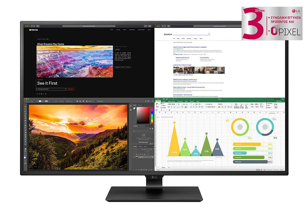 Το μοντέλο LG 43UN700 δίνει τη δυνατότητα για επαγγελματικού επιπέδου και βέλτιστη απόδοση με βελτιωμένη ποιότητα εικόνας σε τεράστια οθόνη 42,5 ιντσών.