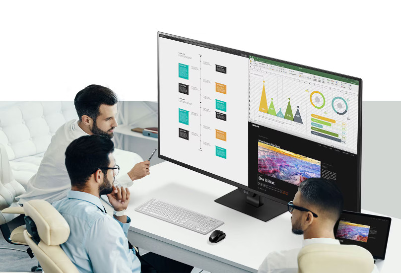 Το μεγάλο μέγεθος με ευρείες γωνίες θέασης, επιτρέπει την άνετη εργασία με συναδέλφους, για ακόμα καλύτερη εργασιακή απόδοση.