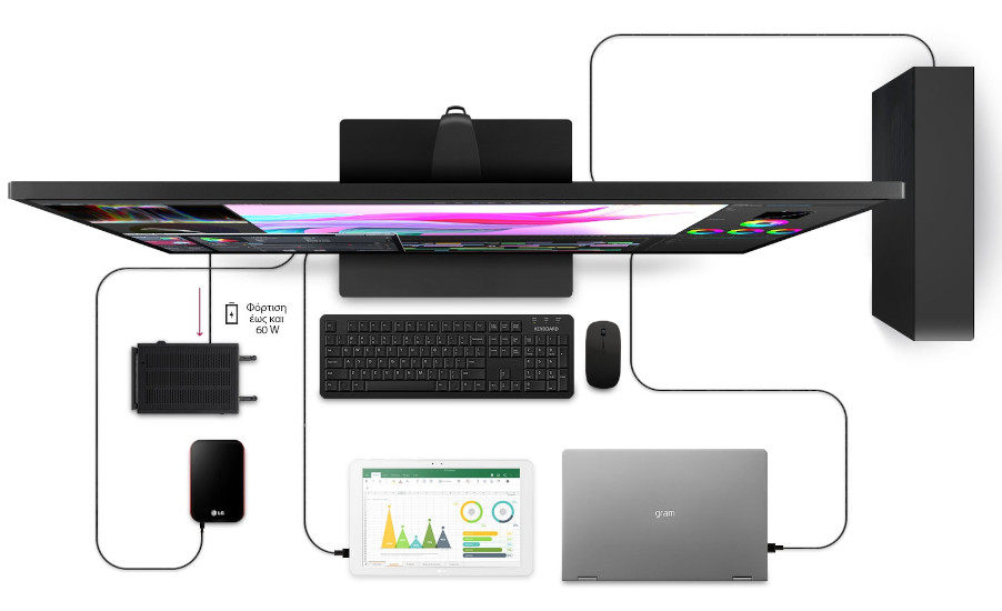 Μέσω της θύρας USB Type-C™ μπορείτε να επεξεργάζεστε τα δεδομένα σας και να φορτίζετε τις συσκευές σας έως και 60 W μέσω ενός μόνο καλωδίου. Επιπλέον, είσοδοι επέκτασης με προσαρμοζόμενη βάση, επιτρέπουν τη σύνδεση πλήθους συσκευών, διατηρώντας το γραφείο τακτοποιημένο και βελτιώνοντας την παραγωγικότητα.