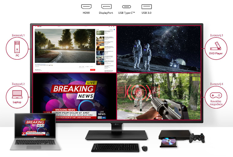 Το μοντέλο 43UN700 παρέχει εκτεταμένο περιβάλλον χρήσης, υποστηρίζει USB type-C™, καθώς και διάφορες επιλογές συνδεσιμότητας*, και μπορεί να συνδέεται ταυτόχρονα με έως και τέσσερις διαφορετικές συσκευές πολυμέσων. Έτσι, μπορείτε να διαμορφώνετε το δικό σας multiplex και να απολαμβάνετε περισσότερο περιεχόμενο.